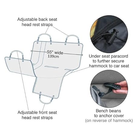 Thông tin sản phẩm Kurgo Wander Hammock Cover, Dog Car Seat Protector, Durable Scratch-Resistant Material, Waterproof, Black