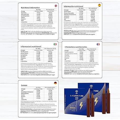Thông tin sản phẩm L-CARNITINE 3000 Pure 20 Ampoules Pre-Workout Booster. For Strength, Fitness, Sport. Vegan Certified CE. N2 Natural Nutrition