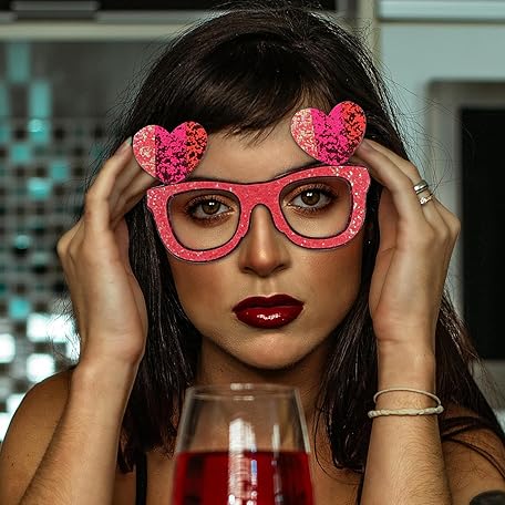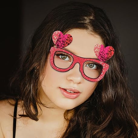 LABRIMP 2pcs Valentine S Day Heart Glasses Party Eyewear Reusable Sturdy Love Heart Shaped Photo Booth Props for Women Anniversary Engagement Festival Celebrations