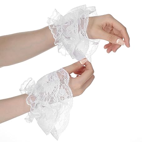 Thông tin sản phẩm Lace Gloves Women Floral Wrist Cuff Gloves Lolita Ruffled Short Cuff Lace Elastic Bracelet for Wedding, Tea Party, Halloween
