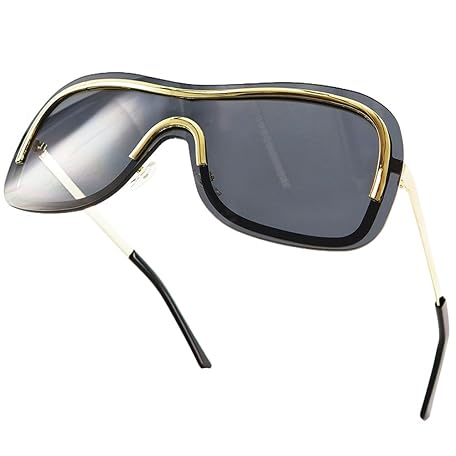 Laemzinv Y2k Wrap Around Sunglasses with Large Shield Shades, Big Metal Temple Retro 90s Style Futuristic Sunnies UV400 LA042, A5 | Black, L