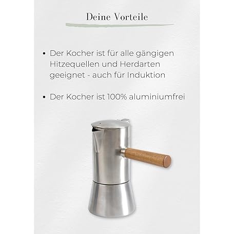 Thông tin sản phẩm LAMBDA COFFEE® VESUV Espresso Maker, Stainless Steel, 3-4 Cups, Induction, Outdoor & Indoor, Moka Pot