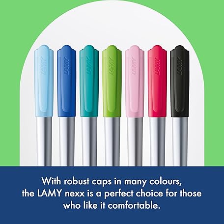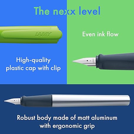 Lamy nexx lime – Fountain Pen with slip-proof grip & polished Left-Handed steel nib (LH) in size M - triangular aluminum body - including LAMY T 10 blue cartridge