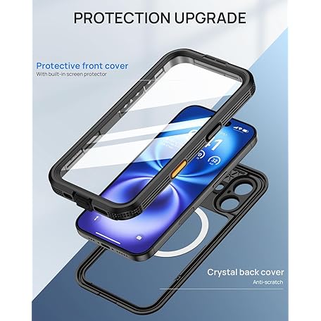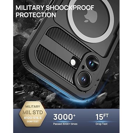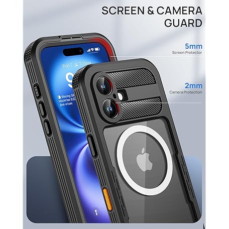 Thông tin sản phẩm Lanhiem for iPhone 16 Waterproof Case, [Compatible with MagSafe] Heavy Duty Shockproof Dustproof Cover with Built in Screen Protector, Protective Magnetic Phone Case for iPhone 16-6.1 inch (Black)