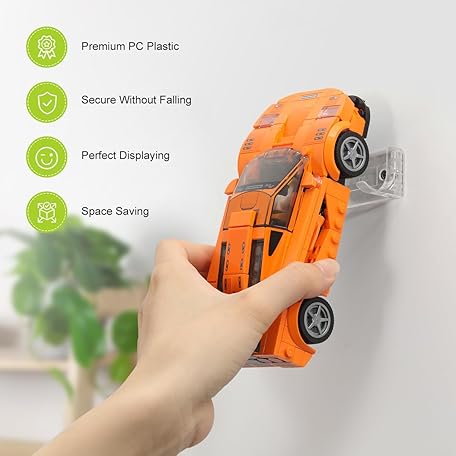 Thông tin sản phẩm LANMU 12 PCS Collectible Car Wall Mount Compatible with Lego Speed Champion Series Car Standard Size and Solus GT, Clear Wall Display Vertical for Wheels Wide 2.75'' - 3.15'' (7-8cm)