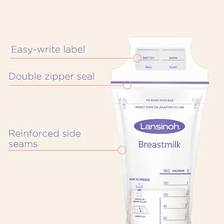 Thông tin sản phẩm Lansinoh Breast Milk Storage Bags Breastmilk Pouches for fridge or freezer use, store flat or standing, BPA and BPS free, pre-sterilised, double zipper seal, Pack of 100