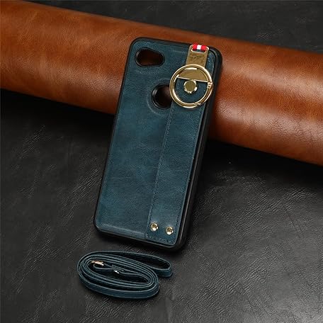 Lanyard Case for Google Pixel 3A XL Case with Ring, Wrist Strap + Stand, Necklace Mobile Phone Cover with Strap, PU Leather Cases for Google Pixel 3A XL-Blue