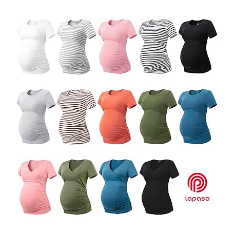 Sản phẩm LAPASA Women's Maternity Tops, Soft Modal Cotton Pregnancy Tshirts, Side Ruched Crew Neck Short Sleeve Tees L55 đang được bán với giá ưu đãi là $46.3686 tại nước Anh.