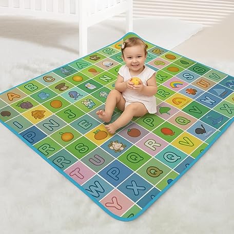 Thông tin sản phẩm Large Baby Play Mat 200x180cm – Double-Sided Soft Foam Crawling Mat | Educational Reversible Picnic Carpet for Kids & Toddlers (Fruits Design, Alphabet Design, 200x180cm)