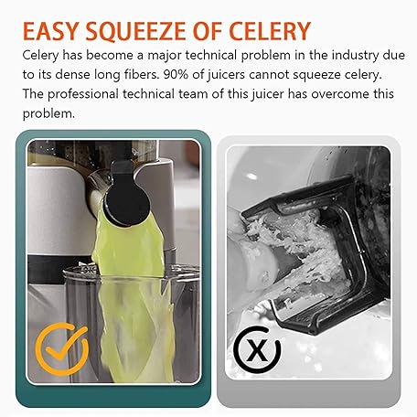 Thông tin sản phẩm Large Feed Chute 13cm Masticating Juicer, Self Feeding Cold Press Juicer with 200W Motor, 160nm Slow Juicer Machines,Juice Extractor for Whole Fruits & Vegetables,Easy to Clean,Green