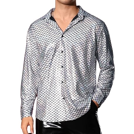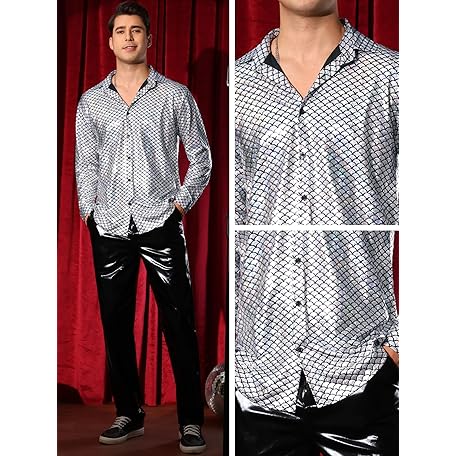 Sản phẩm Lars Amadeus Metallic Shirt for Men's Long Sleeves Party Nightclub Patterned 70s Disco Shirts đang được bán với giá ưu đãi là $48.9083 tại nước Anh.