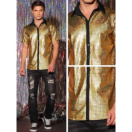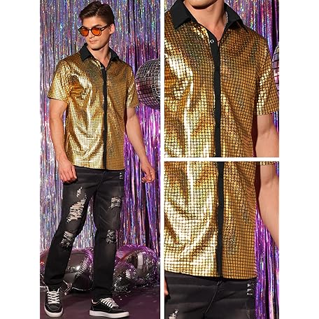 Sản phẩm Lars Amadeus Shiny Metallic Shirts for Men's Short Sleeves Button Sequin Disco Glitter Shirts đang được bán với giá ưu đãi là $46.0743 tại nước Anh.