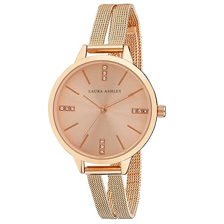 Laura Ashley Ladies LA31054RG Rose Gold Round Case Split Mesh Band Sunray Dial Watch