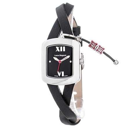 LAURA BIAGIOTTI Women's Quartz Analog Watch with Leather Strap LB0044L-NE, Black/White, 25 MM