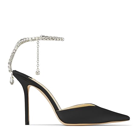 Thông tin sản phẩm LauraVicci Women's Heeled Sandals Crystal Chain Ankle Straps Rhinestones Buckle High Heels Stiletto Slip On Wedding Party Satin Dress Shoes, Black Satin, 5.5 UK