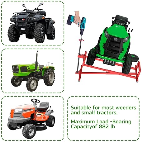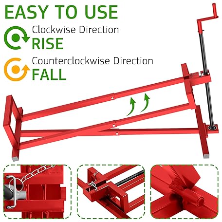 Thông tin sản phẩm Lawn Mower Lift Jack, LESANM Lifting Platform 882 Lbs Capacity Telescopic Maintenance Jack for Garden Tractors and Riding Lawn Mower with Manual Handle & Power Tool Extension Handle - Red