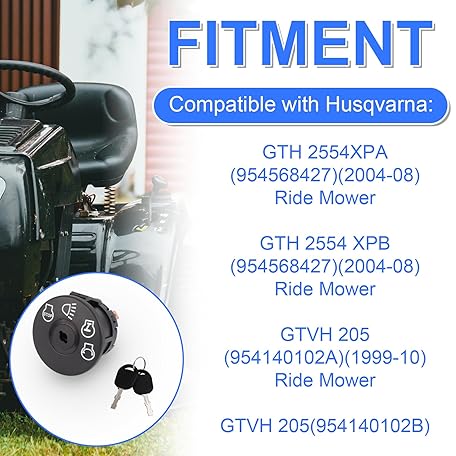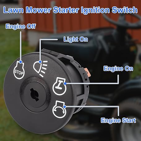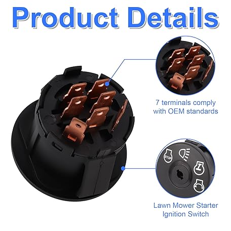 Thông tin sản phẩm Lawn Mower Starter Ignition Switch with Key 7 Terminals for Husqvarna Sears Craftsman John Deere Parts, 4 Position Ignition Starter Switch Compatible with 175566 175442 GY20074 and More