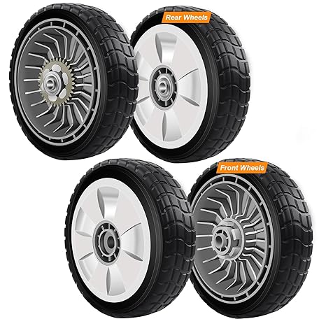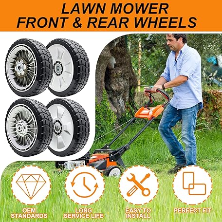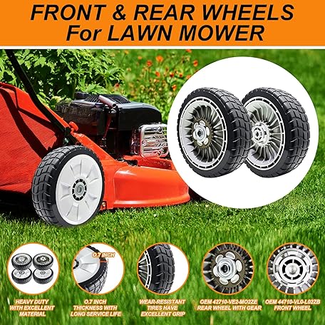 Thông tin sản phẩm Lawn Mower Wheels, 4 Pack HRR216 Lawn Mower Drive Wheels with 2 Rear Wheels 42710-VE2-M02ZE + 2 Front Wheels 42710-VH7-010ZA Replace for Honda HRT216 HRR216 HRS216 HRB215 Lawn Mower Replacement