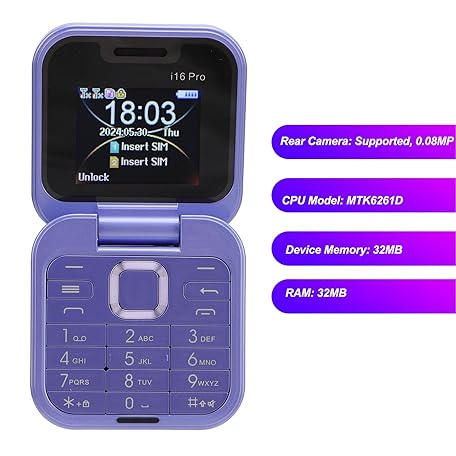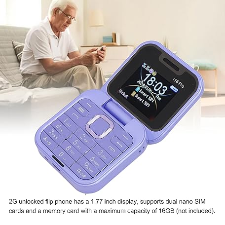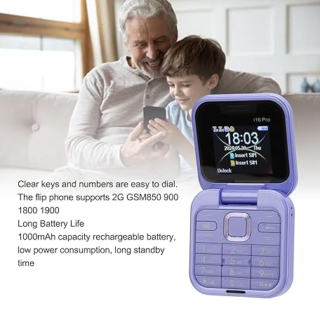 Thông tin sản phẩm Lazmin112 Senior Flip Phone, 2G Foldable Mobile Phone with Big Buttons, Loud Sound, Dual SIM, Fast Dialing, FM Radio, LED Flashlight, Long Standby Senior Phone (Purple)