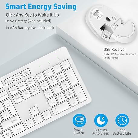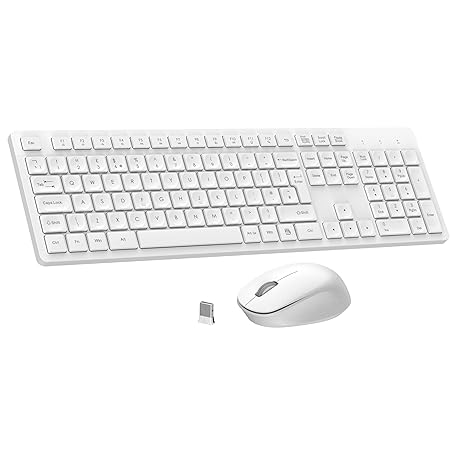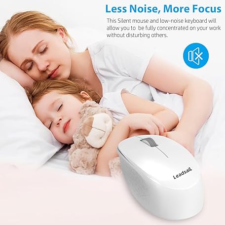Thông tin sản phẩm LeadsaiL Wireless Keyboard and Mouse Set, 2.4GHz USB Computer Keyboards and Mouse Combo, Soft Touch, Full Size UK QWERTY Layout with 12 Multimedia Shortcuts for HP/Lenovo Laptop and Mac-White