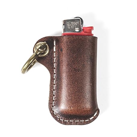 Leather Lighter Case Holder For BIC Mini Size Lighters Sleeve Cover Genuine Leather Case Pouch With Metal Horseshoe Shackles for Keychain pendant (Dark brown, Mini)