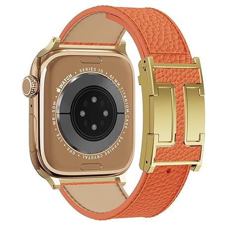 Leather Watch Band with Magnetic Buckle,Dressy Apple Watch Ultra Leather Band Rugged Durable Replacement Strap for Men & Women