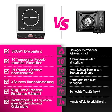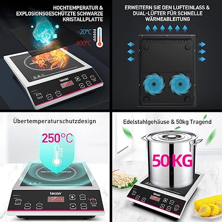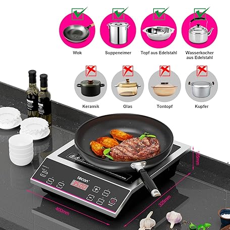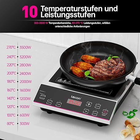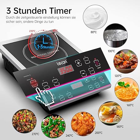 Thông tin sản phẩm Lecon Induction Hob, 3500 W, with On/Off Timer and Insulation Function, Large Load Capacity 50 kg, Stainless Steel Housing, Temperature Control, Hob