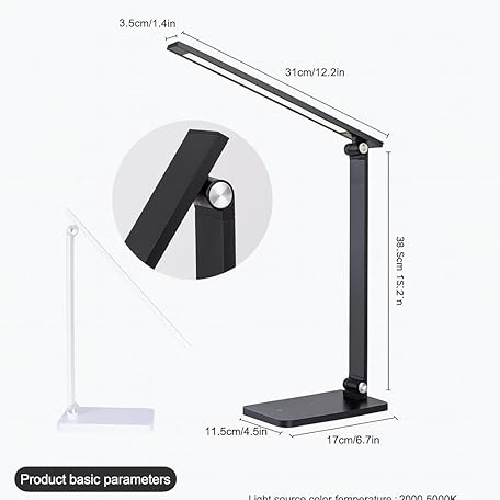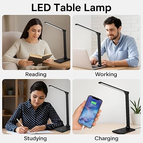 Thông tin sản phẩm LED Desk Table Lamp Dimmable Bedside Lamp with USB Charging Port Touch Control Daylight Lamp for Office, Bedside, Reading
