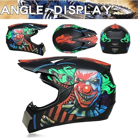 Thông tin sản phẩm LEENY Motocross Helmet Adults Kids Full-Face Cross Helmet with Goggles/Gloves/Mask, Clown Sticker Motorcycle Helmet Set, M(54~55cm)