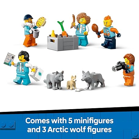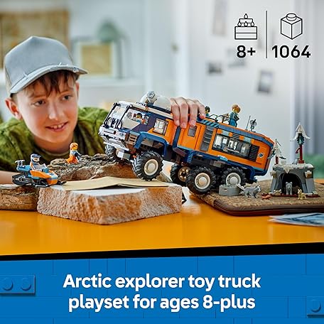 Thông tin sản phẩm LEGO City Arctic Explorer Science Lab Truck Toy - Exploration Vehicle with Steering & Suspension - incl. a Snowscooter, 5 Minifigures & 3 Wolf Animal Figures - Gift for 8+ Year Old Boys - 60471