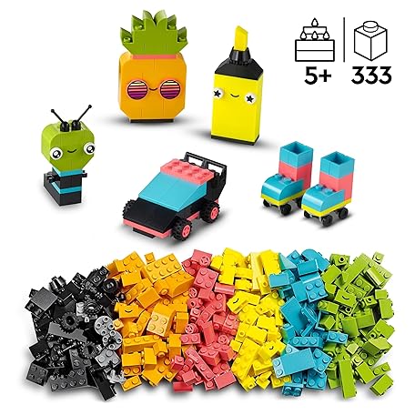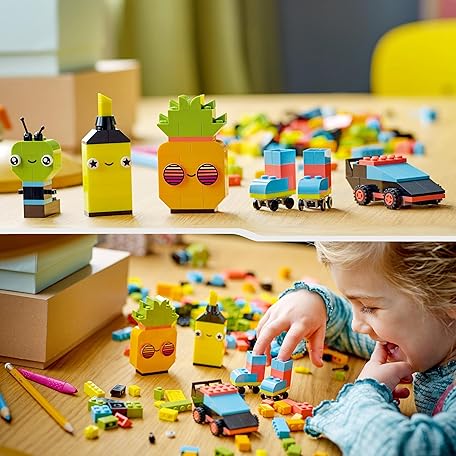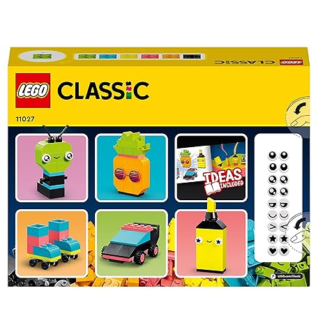 Thông tin sản phẩm LEGO Classic Creative Neon Fun Brick Box Set, Building Toy with Models; Car, Pineapple, Alien, Roller Skates, Characters and More, for Kids, Boys, Girls 5 Plus Years Old 11027