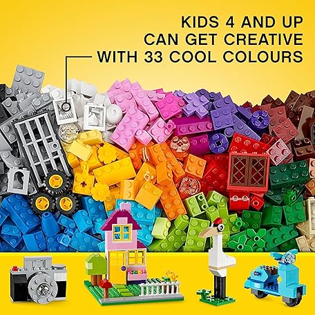 Thông tin sản phẩm LEGO Classic Large Creative Brick Storage Box - Educational Building Toys w/Windows, Doors, Wheels and a Green Baseplate - Gift for 4+ Year Old Boys & Girls - Christmas Treat - 10698