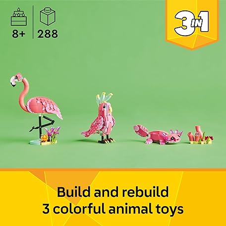 Sản phẩm LEGO Creator 3in1 Wild Animals: Pink Flamingo Toy - Transforms into a Cockatoo Parrot Figure or Axolotl - Creative Birthday Gift for 8+ Year Old Girls & Boys - 31170 đang được bán với giá ưu đãi là $21.7782 tại nước Anh.