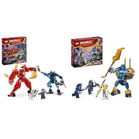 LEGO NINJAGO Kai’s Elemental Fire Mech, Action Figure Building Set from Dragons Rising & NINJAGO Jay’s Mech Battle Pack, Action Figure Toy for 6 Plus Year Old Boys, Girls & Kids