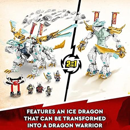 Thông tin sản phẩm LEGO NINJAGO Zane’s Ice Dragon Creature 2in1 Dragon Toy to Action Figure Warrior, Model Building Kit, Construction Set for Kids, Boys & Girls with 5 Minifigures 71786