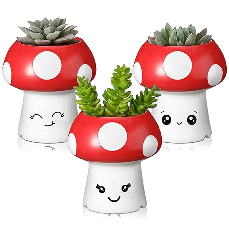 Leinuosen 4 Pack Smile Face Mushroom Planter Pots for Indoor Outdoor Plant Small Succulent Mini Cactus Pot with Drainage for Living Room Office Table Decor