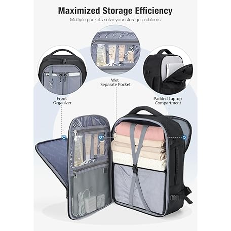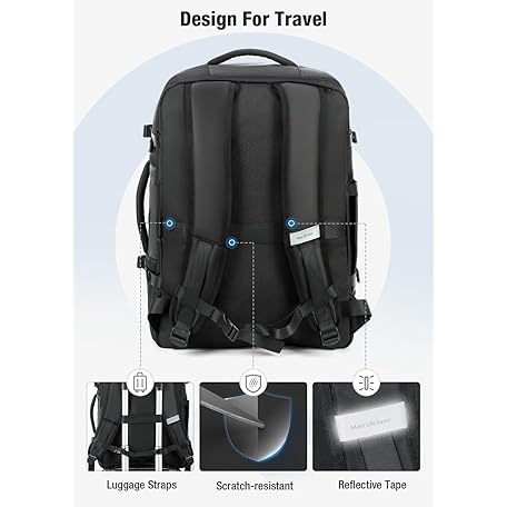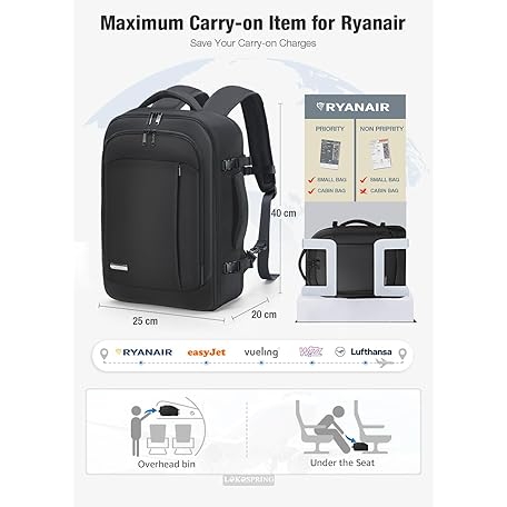 Thông tin sản phẩm Lekespring Travel Backpack Cabin Size – Carry On Laptop Backpack, Ryanair Approved, 40x20x25 cm with 6 Organizational Compartments(Black)