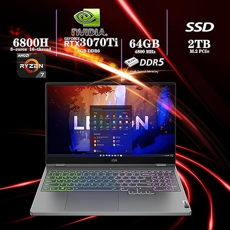 Thông tin sản phẩm Lenovo 2022 Legion 5 Gen 7 15.6" FHD 165Hz Gaming Laptop, AMD Ryzen 7 6800H, 64GB DDR5 RAM, 2TB PCIe SSD, NVIDIA GeForce RTX 3070Ti, 4zone RGB Backlit Keyboard, Gray, Win 11 Pro, 32GB USB Card
