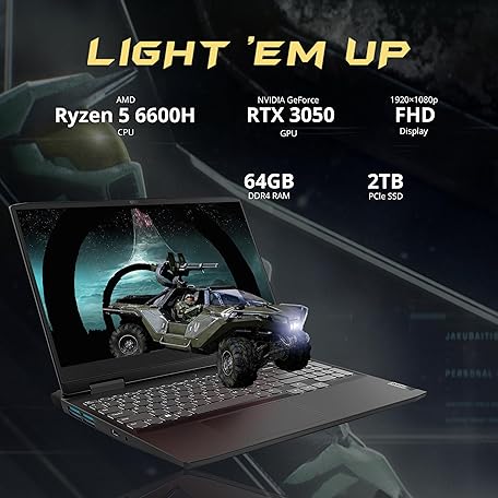 Thông tin sản phẩm LENOVO IdeaPad Gaming 3 Gaming Laptop, 15.6" FHD 120Hz Display, AMD Ryzen 5 6600H, 64GB RAM, 2TB PCIe SSD, NVIDIA GeForce RTX 3050, Backlit Keyboard, Onyx Gray, Win 11, 32GB USB Card