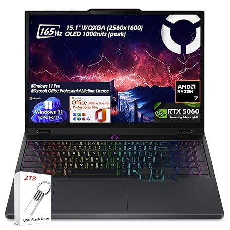 Lenovo Legion 5 15.1" OLED WQXGA 165HZ Gaming Notebook, AMD Ryzen 7 260 16GB RAM 1TB SSD, NVIDIA GeForce RTX 5060, Win11 Pro & Office Lifetime License, Eclipse Black + 2TB Flash Drive, W/GaLiMu