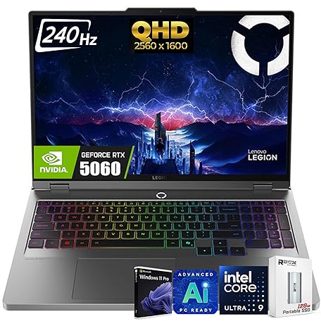 Lenovo Legion 5i 16" AI Gaming Laptop, 16" 240Hz WQXGA (2560x1600) IPS 500nits, Intel 24-Core Ultra 9 275HX, NVIDIA GeForce RTX 5060 8GB GDDR7, RGB Backlit, WiFi7, Win11 PRO, W/128GB PSD(64GB|4TB SSD)
