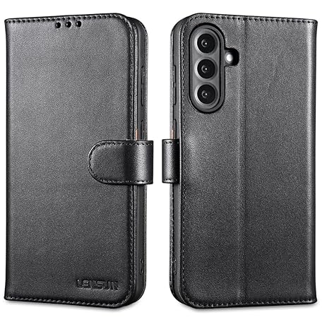 LENSUN Genuine Leather Case for Samsung Galaxy A56, Leather Mobile Phone Case [Genuine Leather] [Magnetic Closure] Mobile Phone Flip Case for Samsung Galaxy A56 5G - Black
