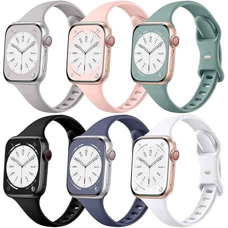 Lerobo 6 Stück, kompatibel mit Apple Watch, 44 mm, 42 mm, 45 mm, 38 mm, 41 mm, 40 mm, 49 mm, für Damen und Herren, weiches, schmales Sportarmband, dünnes Apple Watch Serie 7, 1, Ultra