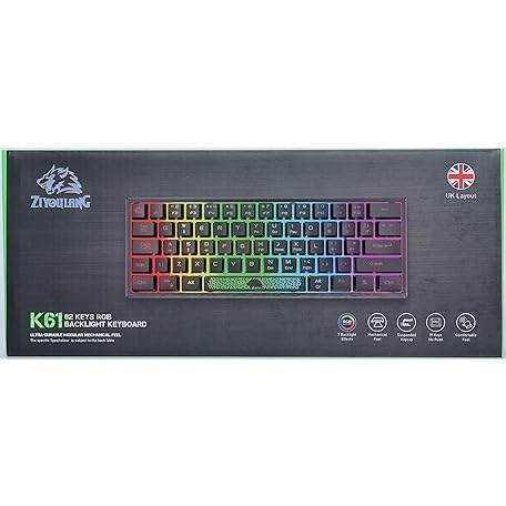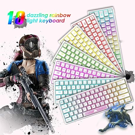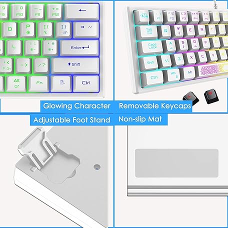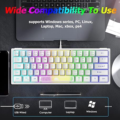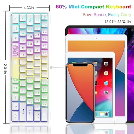 Thông tin sản phẩm LexonElec K61 60% Percent Compact Gaming Keyboard White Keycaps UK Layout, RGB Illuminated LED Backlit Light up Wired Keyboard Mechanical Feel Ergonomic Shortcut for PC Laptop MAC Gamer Travel