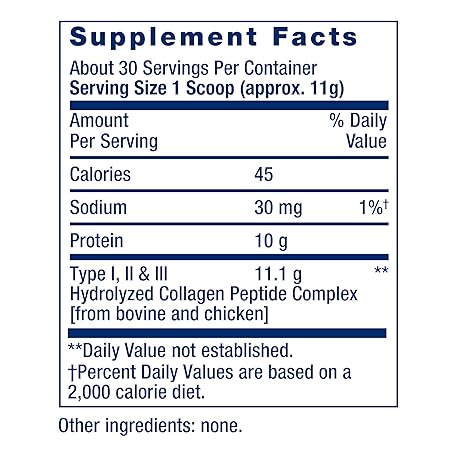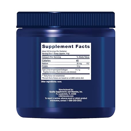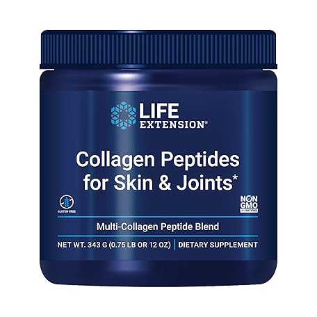Thông tin sản phẩm Life Extension Collagen Peptides for Skin & Joints, Collagen Types I, II & III in an Easy-Mix Powder, Gluten Free, Non-GMO, net Weight 343 Grams