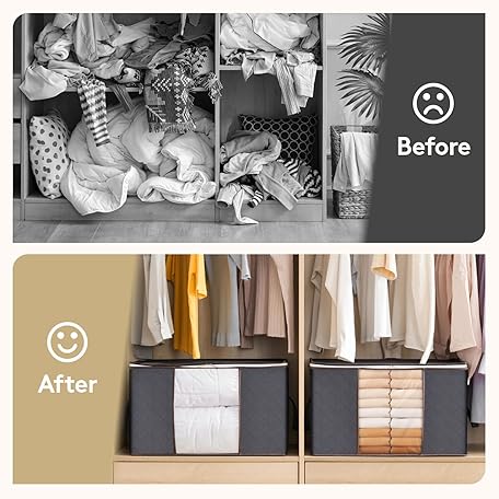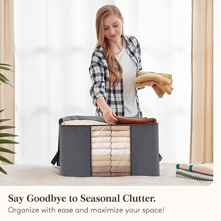 Thông tin sản phẩm Lifewit 95L Clothes Storage Bags Large Storage Box With Lid Packing Boxes for Moving House With Reinforced Handle Thick Fabric Clear Window for Clothes Duvet Blankets Bedding, 3 Pack, Grey