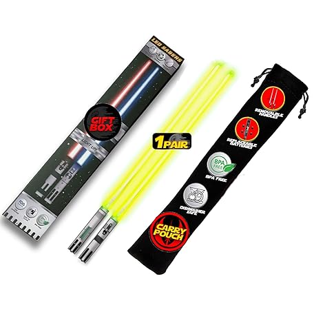 LIGHTSABER CHOPSTICKS LIGHT UP STAR WARS LED Glowing Light Saber Chop Sticks REUSABLE Sushi Lightup Sabers - Removable Handle Dishwasher Safe - Premium GIFT BOX & CARRY CASE Included - YELLOW 1 PAIR