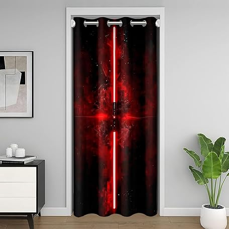 Lightsaber Kids Door Curtain,Universe Video Games Gaming Gamers Blackout Curtain for Bedroom Doorway Living Room,Geometric Neon Light Modern Red Black Fashion Privacy Door Drape 1 Panel,42" W X 80" L
