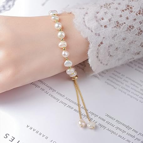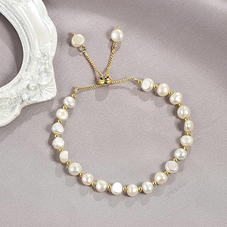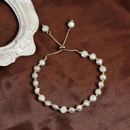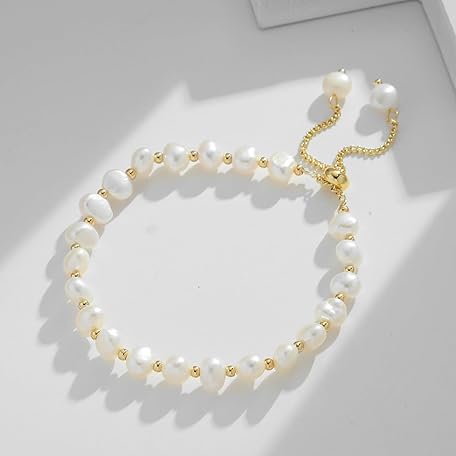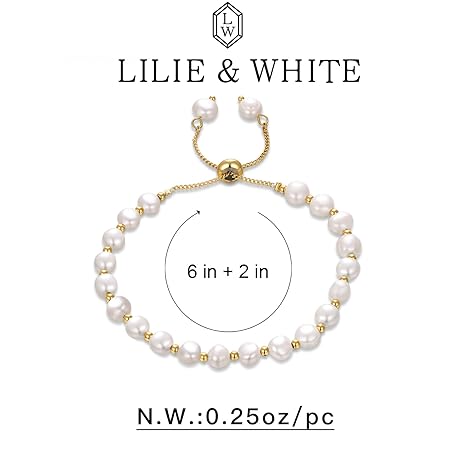Thông tin sản phẩm LILIE&WHITE Natural Pearl Bow Bracelet for Women – Gold Bow Charm, Adjustable Size, Dainty Design with Imitation Pearls, Jewelry Gift