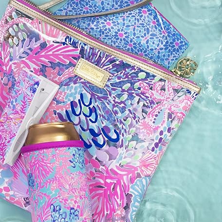 Sản phẩm Lilly Pulitzer Water Resistant Vinyl Beach Day Pouch, Zipper Bag Includes Drink Hugger, Small Pouch, and Towel Clips, Splendor in The Sand, L, Beachy đang được bán với giá ưu đãi là $54.3147 tại nước Anh.